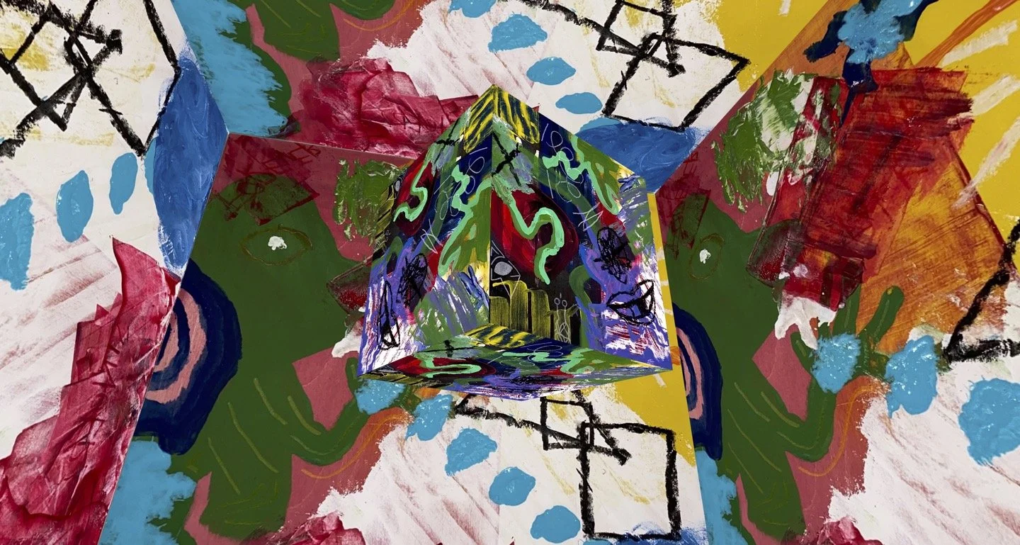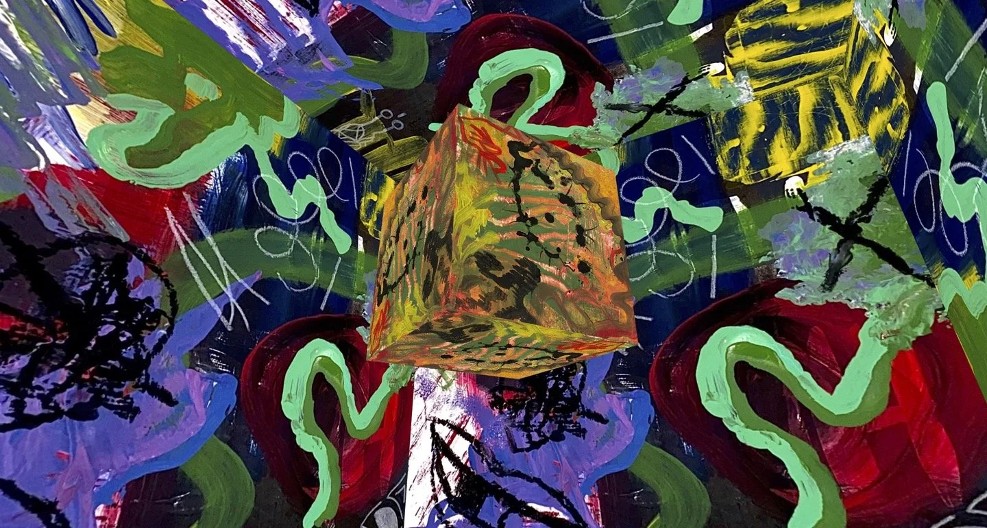 Self Within Self features a triptych of paintings I did in 2020. In the draw function, each painting is applied to a separate box, and the scene continuously rotates around the Y-axis. The sizes of the boxes vary, providing a nested effect. Using the orbitControl function, the user is able to control the orientation of the view point, and pressing the 's' key triggers the saveFrames function, saving frames of different combinations as JPEG images.